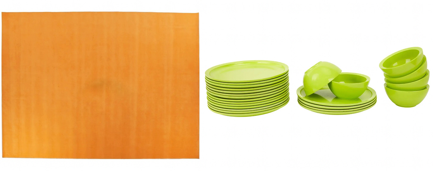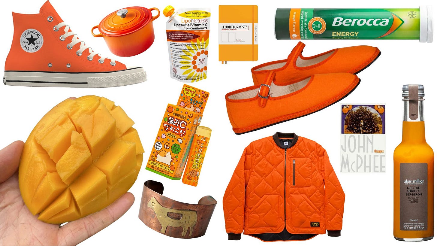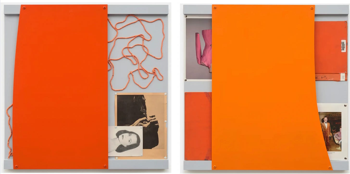 I got excited about orange after seeing Tom Burr’s Journal Works a few weeks ago. They are series of show flyers, photographs, clothing, scraps, etc. held together by monochrome slabs. A physical rendition of the the color walk tiktok trend: pick a shade and document all of its iterations. The show is what I imagine Ellsworth Kelly’s scrapbook looking like. At one point, meaning is lost and life is just a bunch of random shapes.