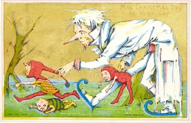 Christmas trees, caroling, advent calendars, nut crackers, and mistletoe — all examples of Queen Victoria’s England repackaging German folk traditions. Charles Dickens then set the holiday’s emotional tone as a time of renewal in A Christmas Carol (1843). The industrial revolution codified holiday decorum. Hallmark, Amazon Prime, and Netflix really messed things up.